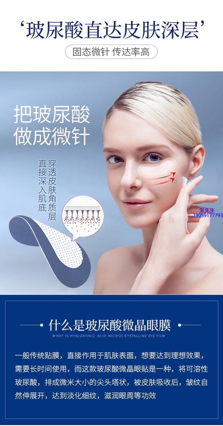 欧标_美容院玻尿酸微针眼贴OEM 玻尿酸微晶片眼贴OEM